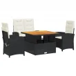 vidaXL Vrtna jedilna garnitura 4-delna z blazinami črn poli ratan