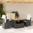 vidaXL Vrtna jedilna garnitura 4-delna z blazinami črn poli ratan
