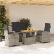 vidaXL Vrtna jedilna garnitura 4-delna z blazinami siv poli ratan