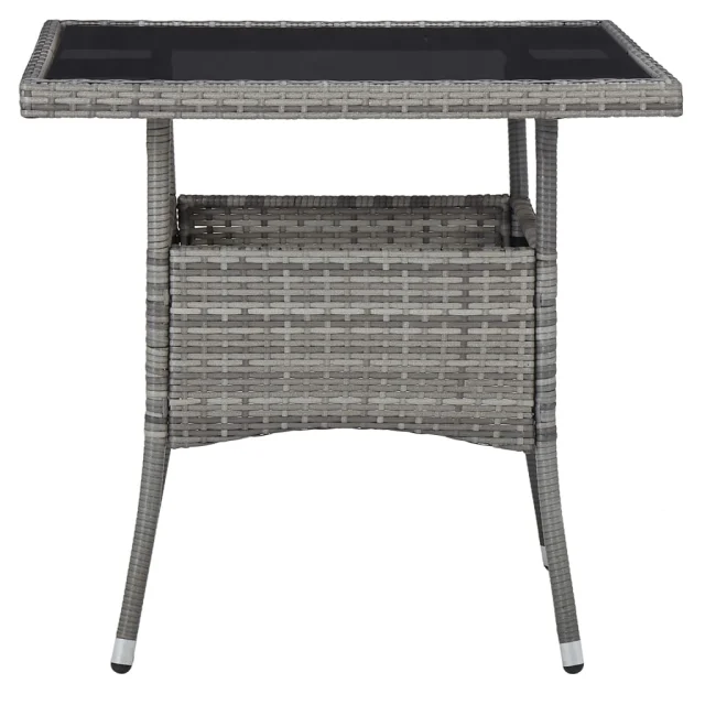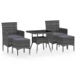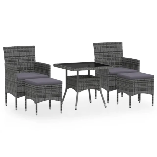 vidaXL Vrtna jedilna garnitura 5-delna poli ratan in kaljeno steklo siva