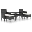 vidaXL Vrtna jedilna garnitura 5-delna poli ratan in steklo črna