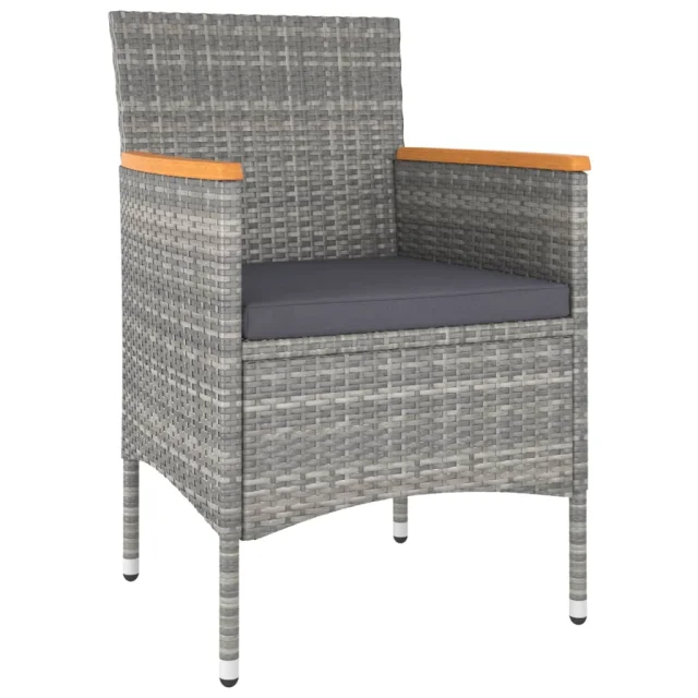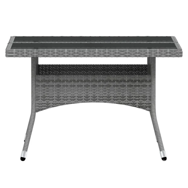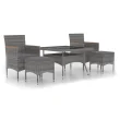 vidaXL Vrtna jedilna garnitura 5-delna poli ratan in steklo siva