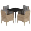 vidaXL Vrtna jedilna garnitura 5-delna z blazinami bež poli ratan