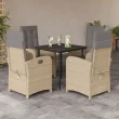 vidaXL Vrtna jedilna garnitura 5-delna z blazinami bež poli ratan