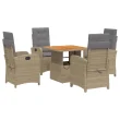 vidaXL Vrtna jedilna garnitura 5-delna z blazinami bež poli ratan