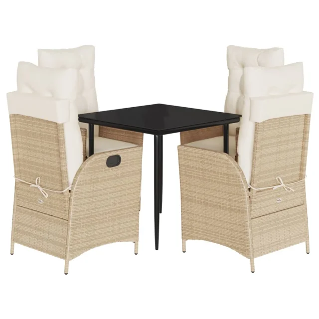 vidaXL Vrtna jedilna garnitura 5-delna z blazinami bež poli ratan