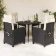 vidaXL Vrtna jedilna garnitura 5-delna z blazinami črn poli ratan