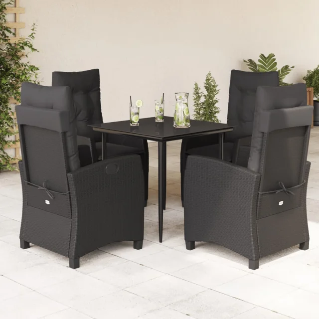 vidaXL Vrtna jedilna garnitura 5-delna z blazinami črn poli ratan
