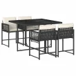 vidaXL Vrtna jedilna garnitura 5-delna z blazinami črn poli ratan