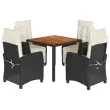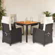 vidaXL Vrtna jedilna garnitura 5-delna z blazinami črn poli ratan