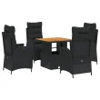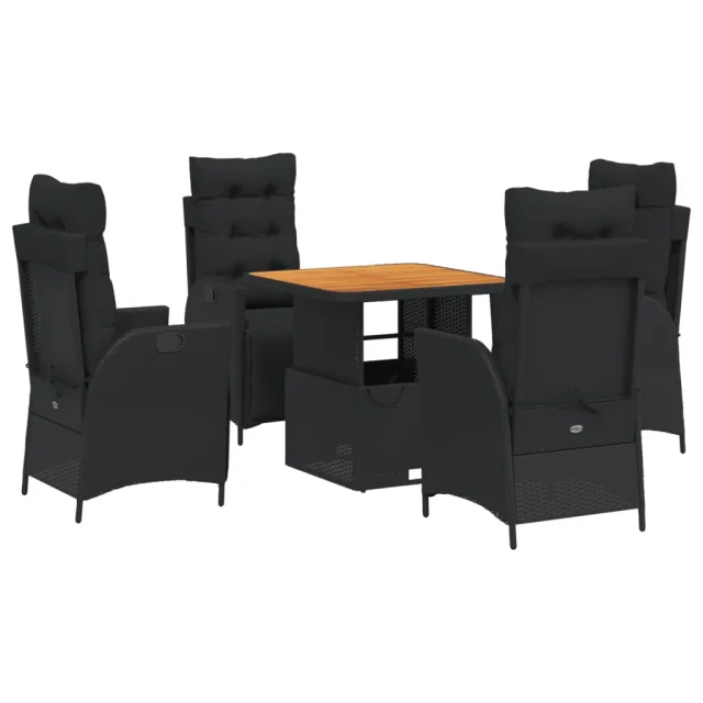 vidaXL Vrtna jedilna garnitura 5-delna z blazinami črn poli ratan