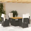 vidaXL Vrtna jedilna garnitura 5-delna z blazinami črn poli ratan
