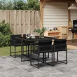 vidaXL Vrtna jedilna garnitura 5-delna z blazinami črn poli ratan
