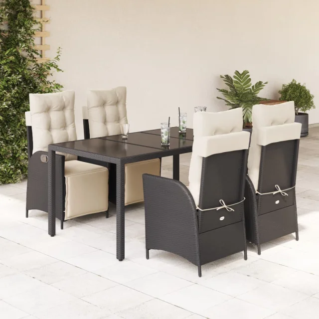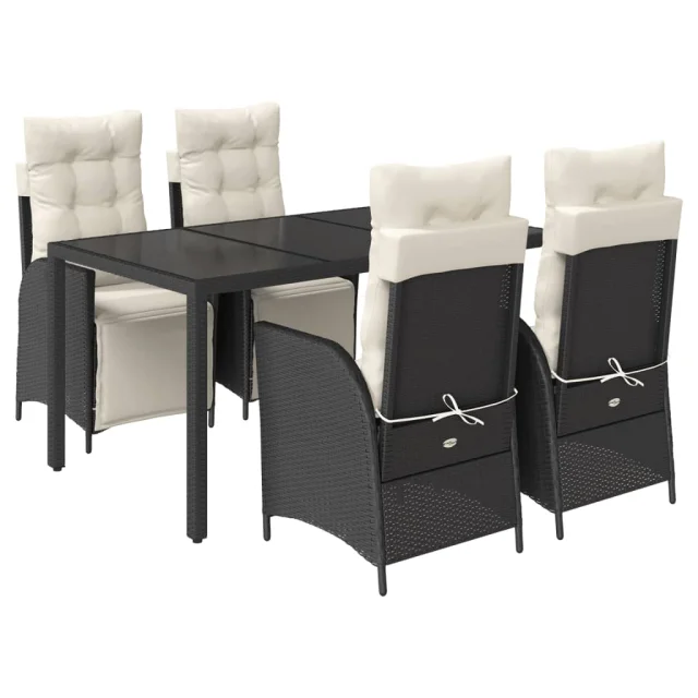 vidaXL Vrtna jedilna garnitura 5-delna z blazinami črn poli ratan