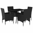 vidaXL Vrtna jedilna garnitura 5-delna z blazinami črn poli ratan