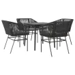 vidaXL Vrtna jedilna garnitura 5-delna z blazinami črn poli ratan
