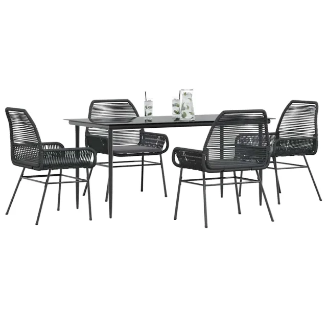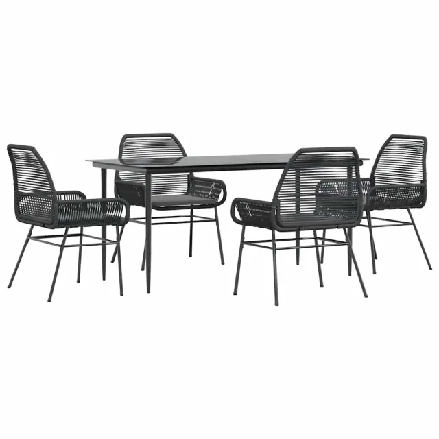 vidaXL Vrtna jedilna garnitura 5-delna z blazinami črn poli ratan