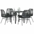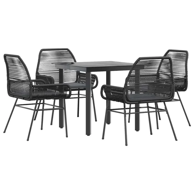 vidaXL Vrtna jedilna garnitura 5-delna z blazinami črn poli ratan
