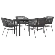 vidaXL Vrtna jedilna garnitura 5-delna z blazinami črn poli ratan