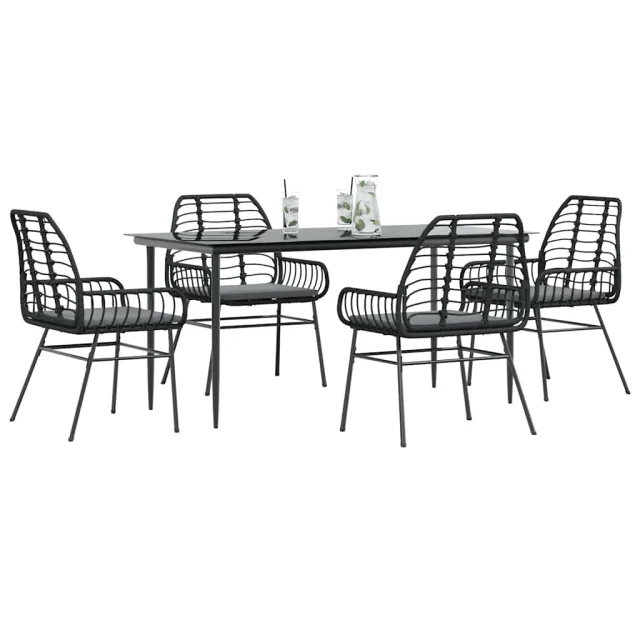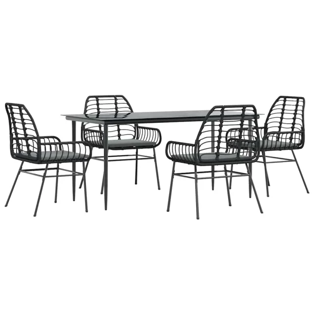 vidaXL Vrtna jedilna garnitura 5-delna z blazinami črn poli ratan