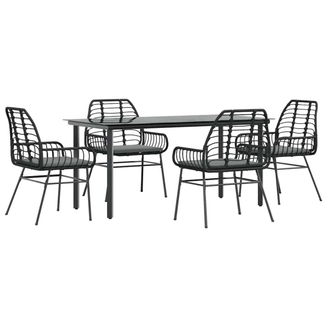 vidaXL Vrtna jedilna garnitura 5-delna z blazinami črn poli ratan