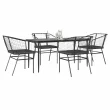 vidaXL Vrtna jedilna garnitura 5-delna z blazinami črn poli ratan