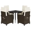 vidaXL Vrtna jedilna garnitura 5-delna z blazinami rjav poli ratan