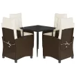 vidaXL Vrtna jedilna garnitura 5-delna z blazinami rjav poli ratan