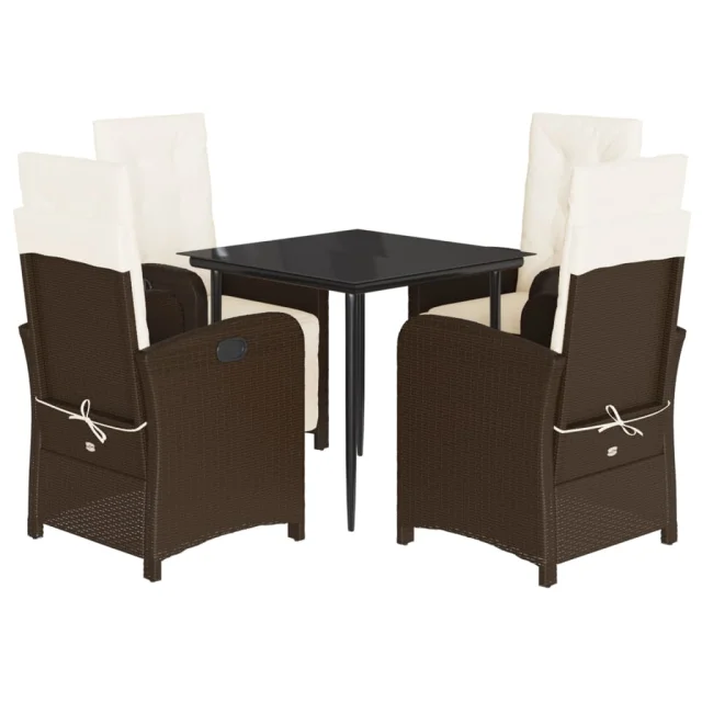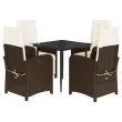 vidaXL Vrtna jedilna garnitura 5-delna z blazinami rjav poli ratan