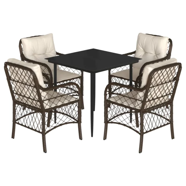vidaXL Vrtna jedilna garnitura 5-delna z blazinami rjav poli ratan