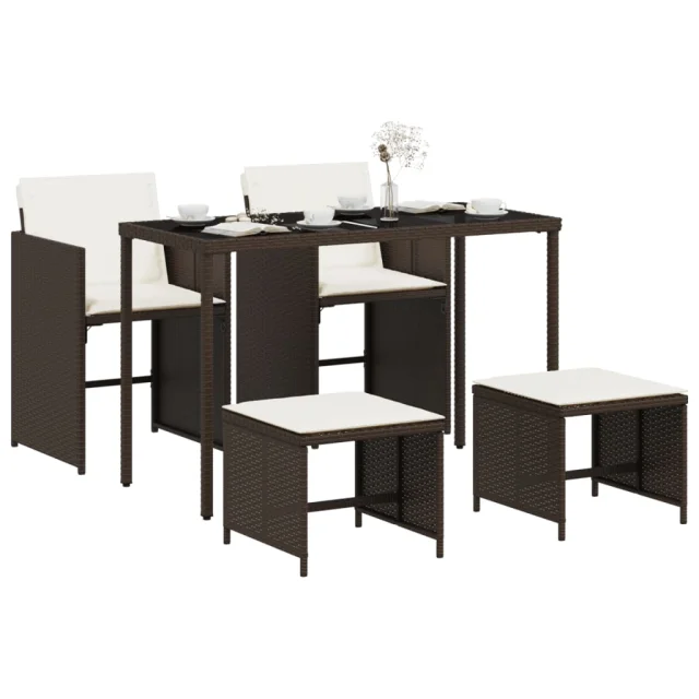vidaXL Vrtna jedilna garnitura 5-delna z blazinami rjav poli ratan