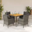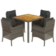vidaXL Vrtna jedilna garnitura 5-delna z blazinami siv poli ratan