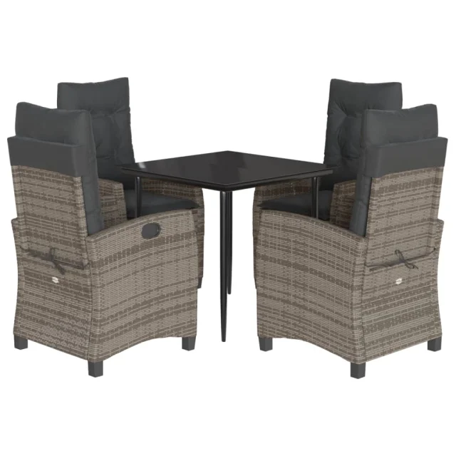 vidaXL Vrtna jedilna garnitura 5-delna z blazinami siv poli ratan