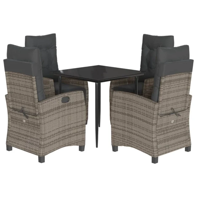 vidaXL Vrtna jedilna garnitura 5-delna z blazinami siv poli ratan