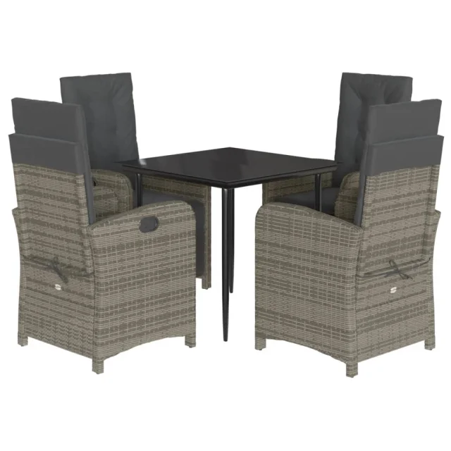 vidaXL Vrtna jedilna garnitura 5-delna z blazinami siv poli ratan