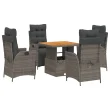vidaXL Vrtna jedilna garnitura 5-delna z blazinami siv poli ratan