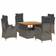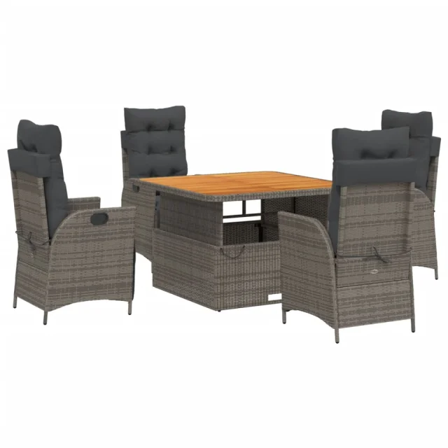 vidaXL Vrtna jedilna garnitura 5-delna z blazinami siv poli ratan