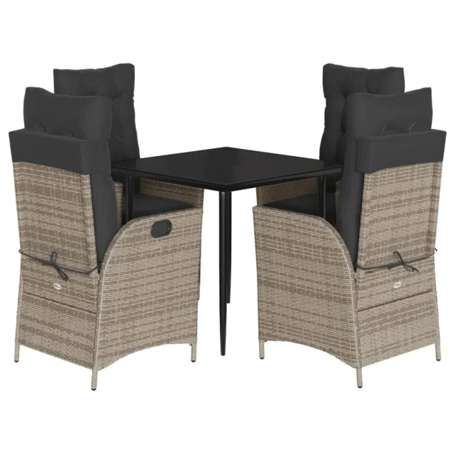 vidaXL Vrtna jedilna garnitura 5-delna z blazinami siv poli ratan