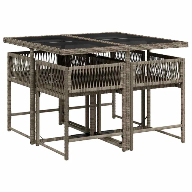vidaXL Vrtna jedilna garnitura 5-delna z blazinami siv poli ratan