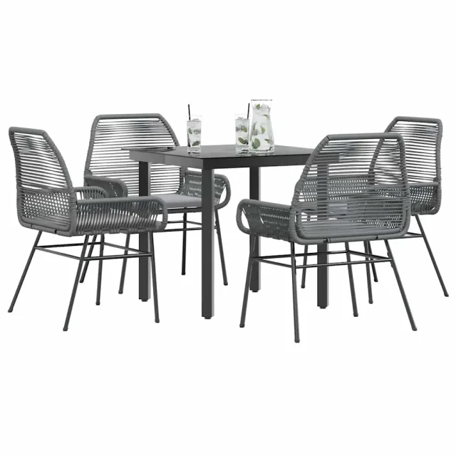 vidaXL Vrtna jedilna garnitura 5-delna z blazinami siv poli ratan