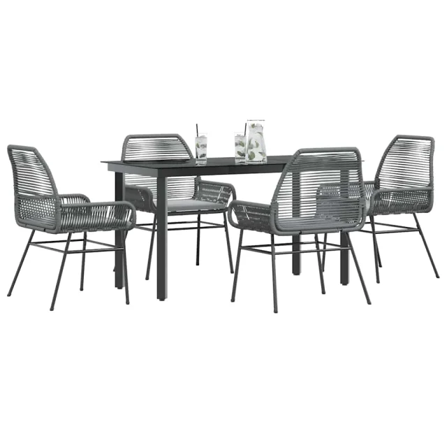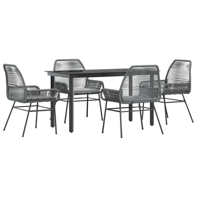 vidaXL Vrtna jedilna garnitura 5-delna z blazinami siv poli ratan