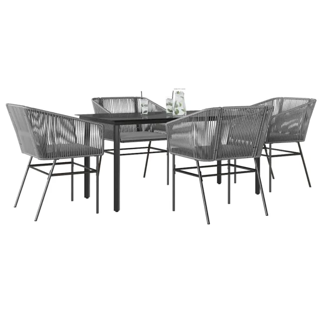 vidaXL Vrtna jedilna garnitura 5-delna z blazinami siv poli ratan
