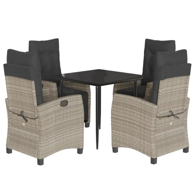 vidaXL Vrtna jedilna garnitura 5-delna z blazinami sv. siv poli ratan