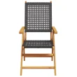 vidaXL Vrtna jedilna garnitura 7-delna črn poli ratan in trden les