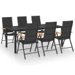 vidaXL Vrtna jedilna garnitura 7-delna črne in rjave barve