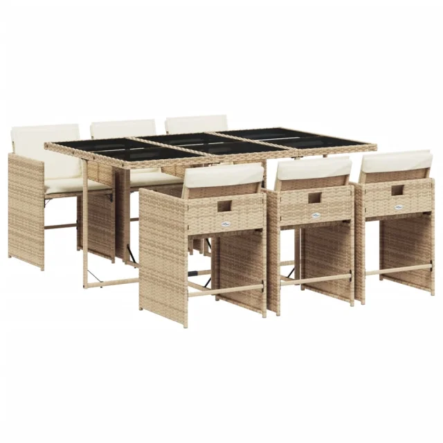 vidaXL Vrtna jedilna garnitura 7-delna z blazinami bež poli ratan