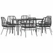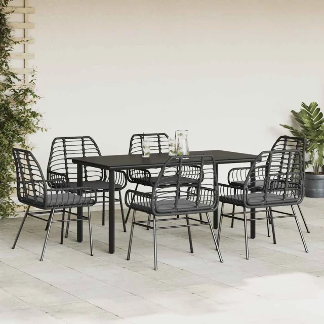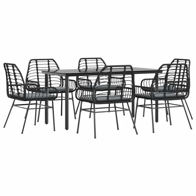 vidaXL Vrtna jedilna garnitura 7-delna z blazinami črn poli ratan