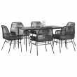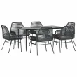 vidaXL Vrtna jedilna garnitura 7-delna z blazinami črn poli ratan