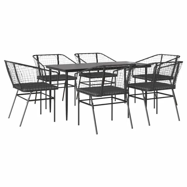 vidaXL Vrtna jedilna garnitura 7-delna z blazinami črn poli ratan