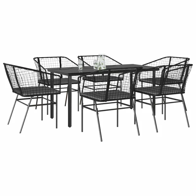 vidaXL Vrtna jedilna garnitura 7-delna z blazinami črn poli ratan